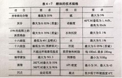 對(duì)燃油規(guī)定的技術(shù)規(guī)格如表4 -7所示。