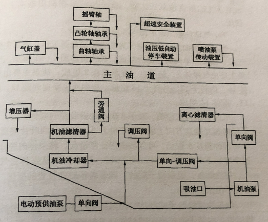 主要由機油泵、預供油泵、機油濾清器、離心濾清器、各種調(diào)節(jié)閥和潤滑管路等組成。