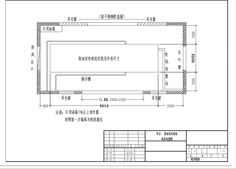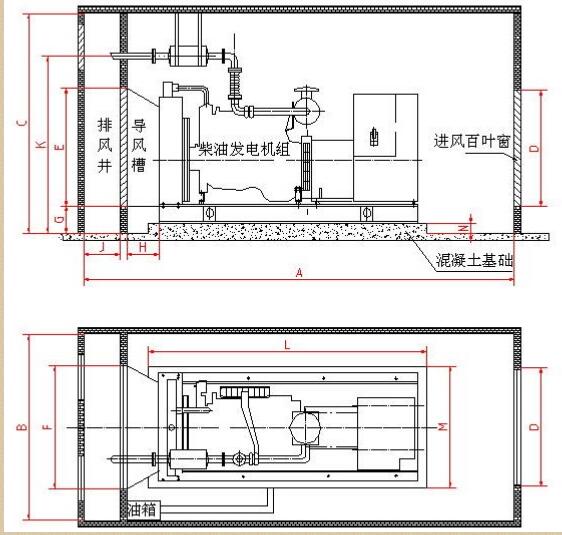 海南上柴柴油發(fā)電機組機房安裝布置圖方案