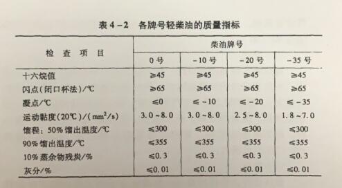 表4 -2是各牌號(hào)輕柴油的質(zhì)量指標(biāo)
