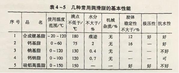 表4-5幾種常 用潤滑脂的基本性能|