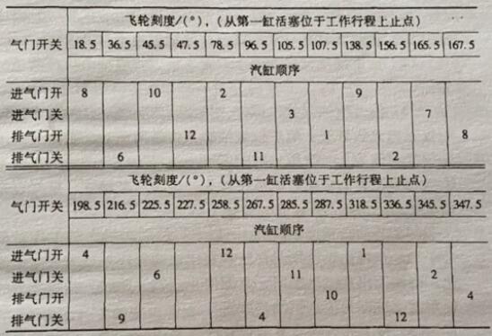 表5-7 12V(KTA19 系列、KTA50系列)柴油機配氣定時檢查表